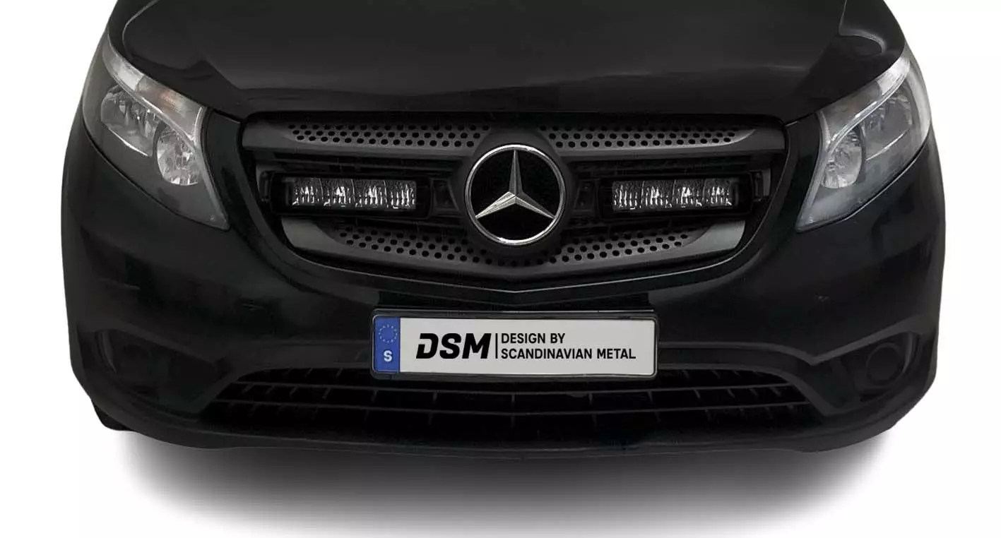 DSM INTEGRA auxiliary light kit for the MB Vito 2014-2020 is a completely new DSM concept featuring model-specific mounting brackets for the integrated installation of LED auxiliary light panels. Designed in Sweden, the DSM INTEGRA is built to withstand our arctic conditions.